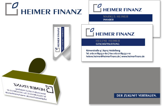 Corporate Identity-Entwicklung für die Finanzberatung Heimer Finanz in Heidelberg.