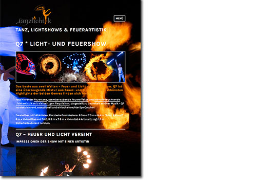 Re-Design der Website für Tanzlicht K - Tanz, Lichtshows und Feuerartistik als responsive Site auf Basis von WordPress in 2017: www.tanzlicht-k.de